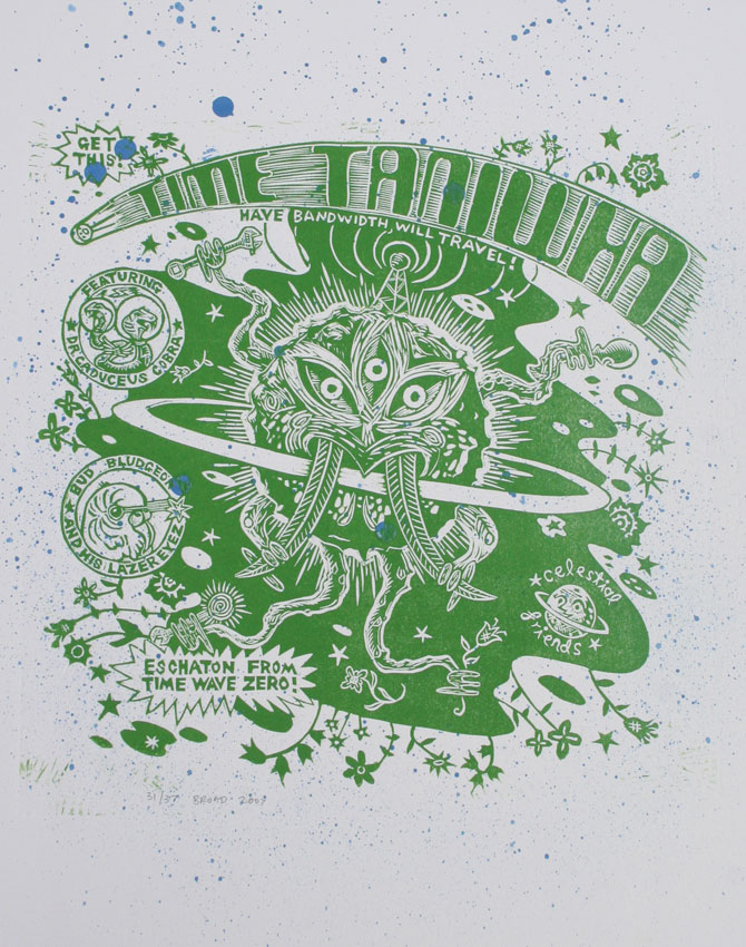 Lino-cut, $95. Paper size: 35.5x42.5 cms, print size: 30x30 cms. 37 in edition.