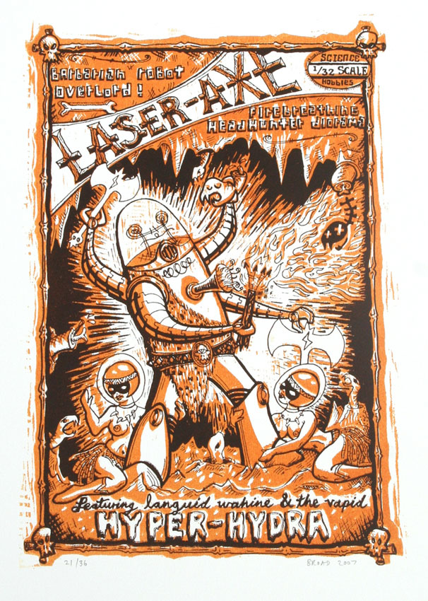 Two block laser & hand woodcut, $125. Paper size: 35.5x43 cms, print size: 22.5x34cms. 36 in edition.