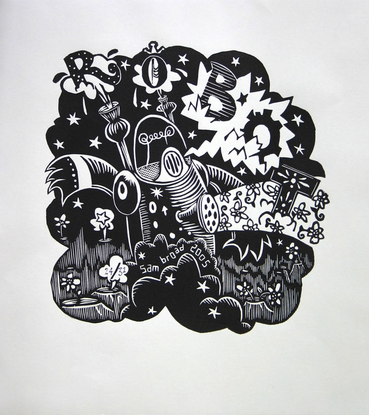 Woodcut, $85. Paper size: 28x31 cms, print size:21x22 cms. 31 in edition.