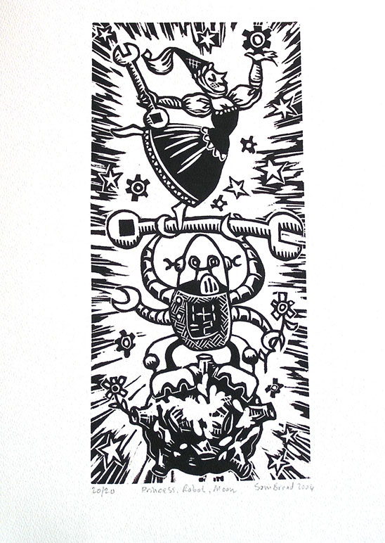 Woodcut, $75. Paper size: 21x30, print size: 11x23.5 cms. 20 in editon,